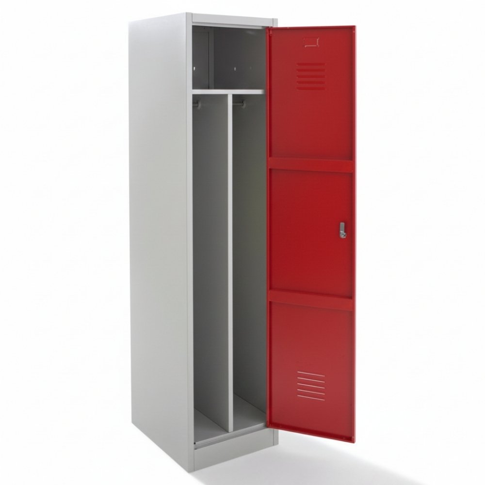 Kirli Temiz Bölmeli Metal Tek Kapaklı Soyunma Dolabı, özellikle hijyenin ve düzenin ön planda olduğu iş ortamları için geliştirilmiş fonksiyonel bir depolama çözümüdür. Tek kapaklı yapısı sayesinde dar alanlarda bile rahat kullanım sunarken, kirli ve temiz alanları birbirinden ayıran iç bölme sistemi ile kullanıcıların eşyalarını düzenli şekilde muhafaza etmesine olanak tanır. Endüstriyel tesisler, fabrikalar, spor salonları, hastaneler ve personel soyunma alanları gibi yoğun kullanım alanlarında tercih edilen bu model, hem pratik hem de güvenli bir kullanım deneyimi sağlar.