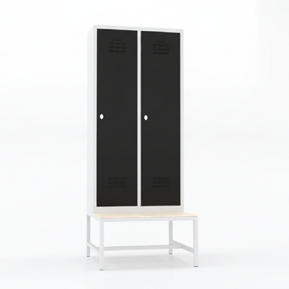 Ergonomik ölçülerle tasarlanan oturma banklı ikili metal soyunma dolabı, modüler yapısı sayesinde yan yana konumlandırılarak daha geniş soyunma alanları oluşturulabilir. Sade ve profesyonel tasarımı, endüstriyel ve kurumsal alanlara uyum sağlar. Oturma bankı ile birlikte sunulan fonksiyonel yapı, kullanıcı deneyimini önemli ölçüde artırır.