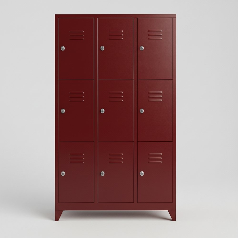 Bu metal soyunma dolabı modeli; fabrikalar, lojistik merkezleri, üretim tesisleri, spor kompleksleri, okullar ve yoğun personel sirkülasyonunun olduğu kurumsal alanlar için ideal bir tercihtir. Dokuzlu kapaklı yapısı, çok kullanıcılı alanlarda dolap ihtiyacını tek bir ünite üzerinden karşılayarak mekânların daha verimli kullanılmasını sağlar.