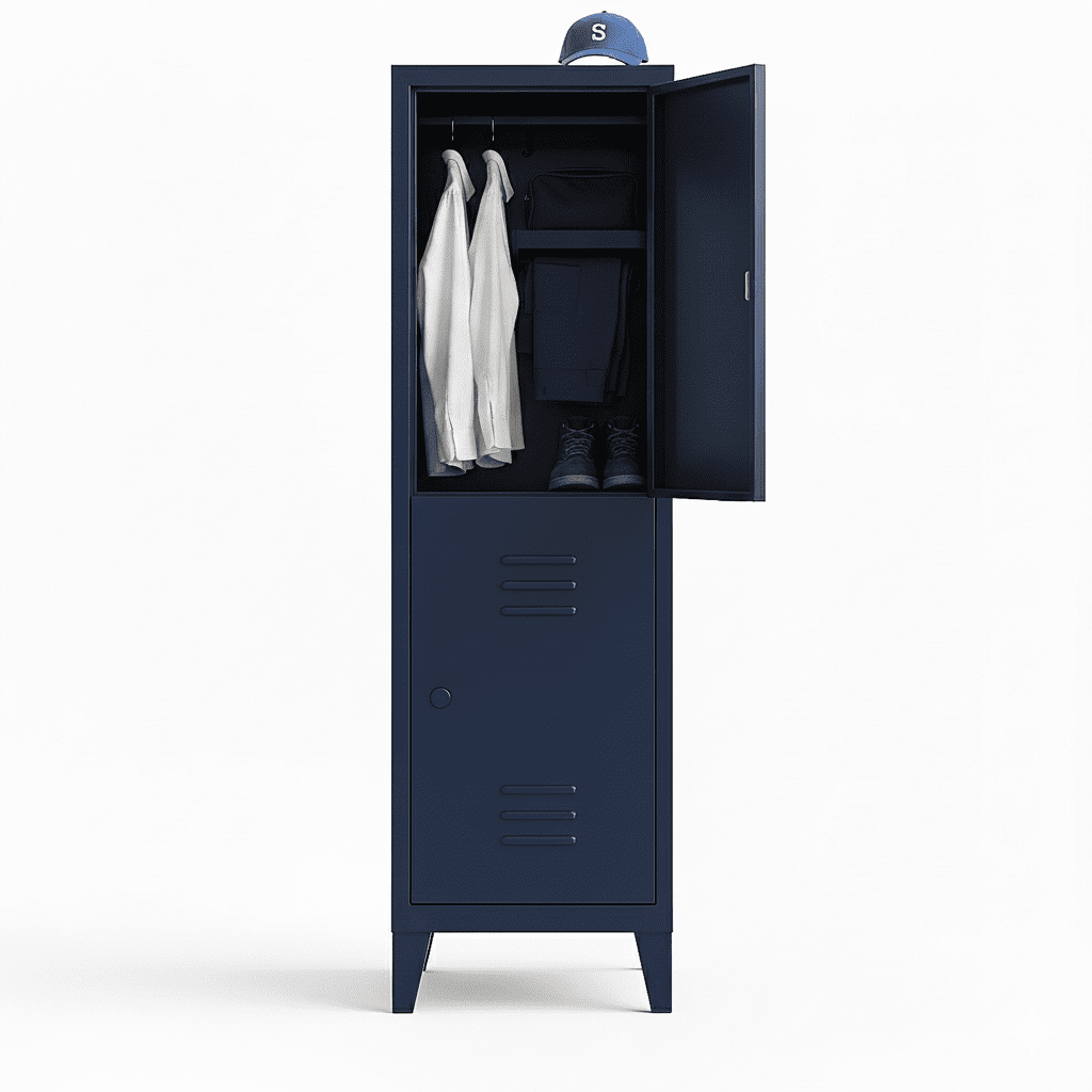 Tek İkili Metal Personel Soyunma Dolabı, profesyonel kullanım için dayanıklı metal yapıda, güvenli ve fonksiyonel soyunma dolabı çözümüdür.