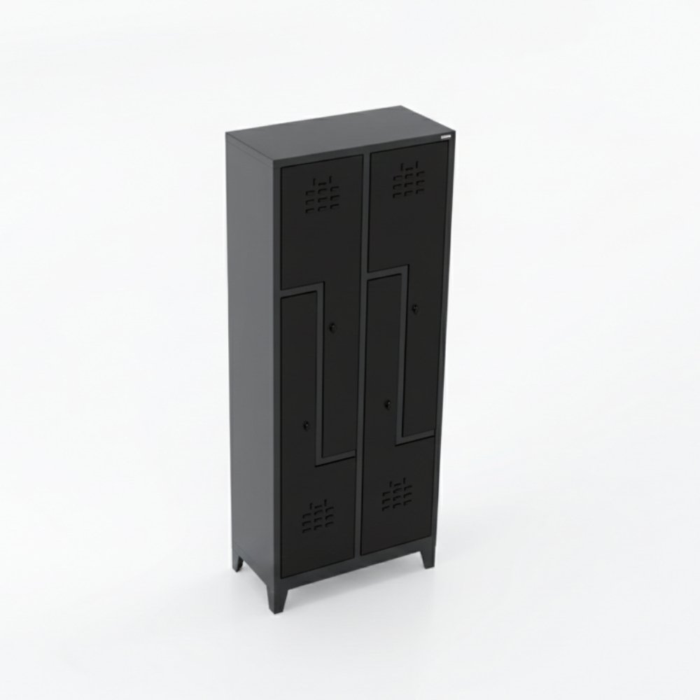 Z Kapaklı Banklı Dörtlü Metal Soyunma Dolabı, entegre oturma bankı sayesinde kullanıcıya ekstra konfor sunar. Z kapak tasarımı, alanı verimli kullanarak dört kullanıcıya özel depolama alanı oluşturur.